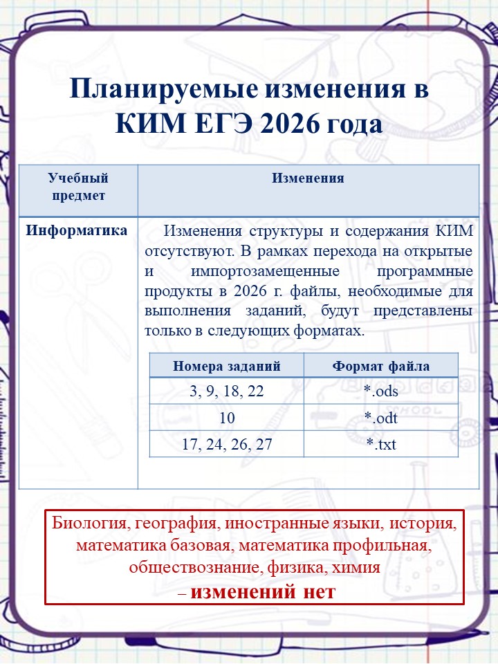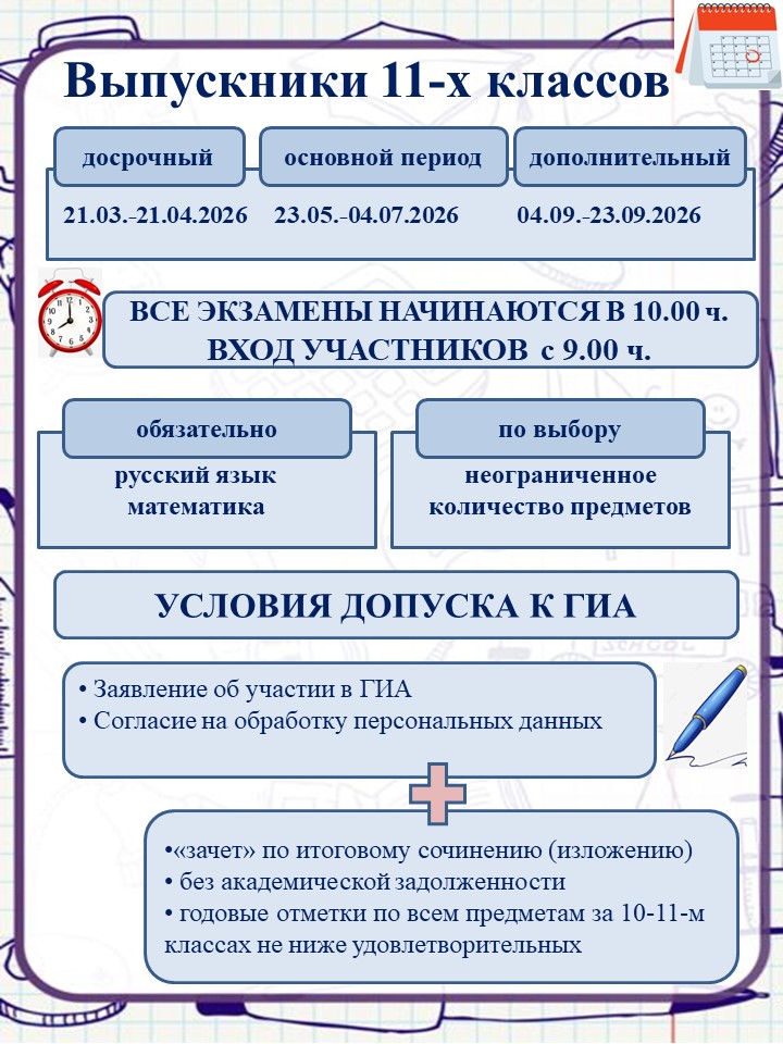 выпускники прошлых лет — в образовательные организации, перечень которых на территории Хабаровского края утвержден Распорряжением Министерства образования и науки Хабаровского края от 07.10.2022 № 1225 С 14 по 25 октября Рособрнадзор и разработчики контрольных измерительных материалов ЕГЭ из Федерального института педагогических измерений (ФИПИ) проведут новую серию онлайн-консультаций «На все 100!» для будущих участников экзаменов и педагогов. В ходе онлайн-консультаций можно будет получить самую актуальную информацию об экзаменационных материалах ЕГЭ 2026 года. Эксперты ФИПИ расскажут, на какие задания стоит обратить особое внимание, как правильно выстроить работу по подготовке к ЕГЭ, как избежать типичных ошибок и лучше использовать доступные ресурсы для подготовки. Трансляции будут проходить в официальных аккаунтах Рособрнадзора: Мы ждем вас! Присоединяйтесь к нашим эфирам и задавайте свои вопросы разработчикам ЕГЭ! |